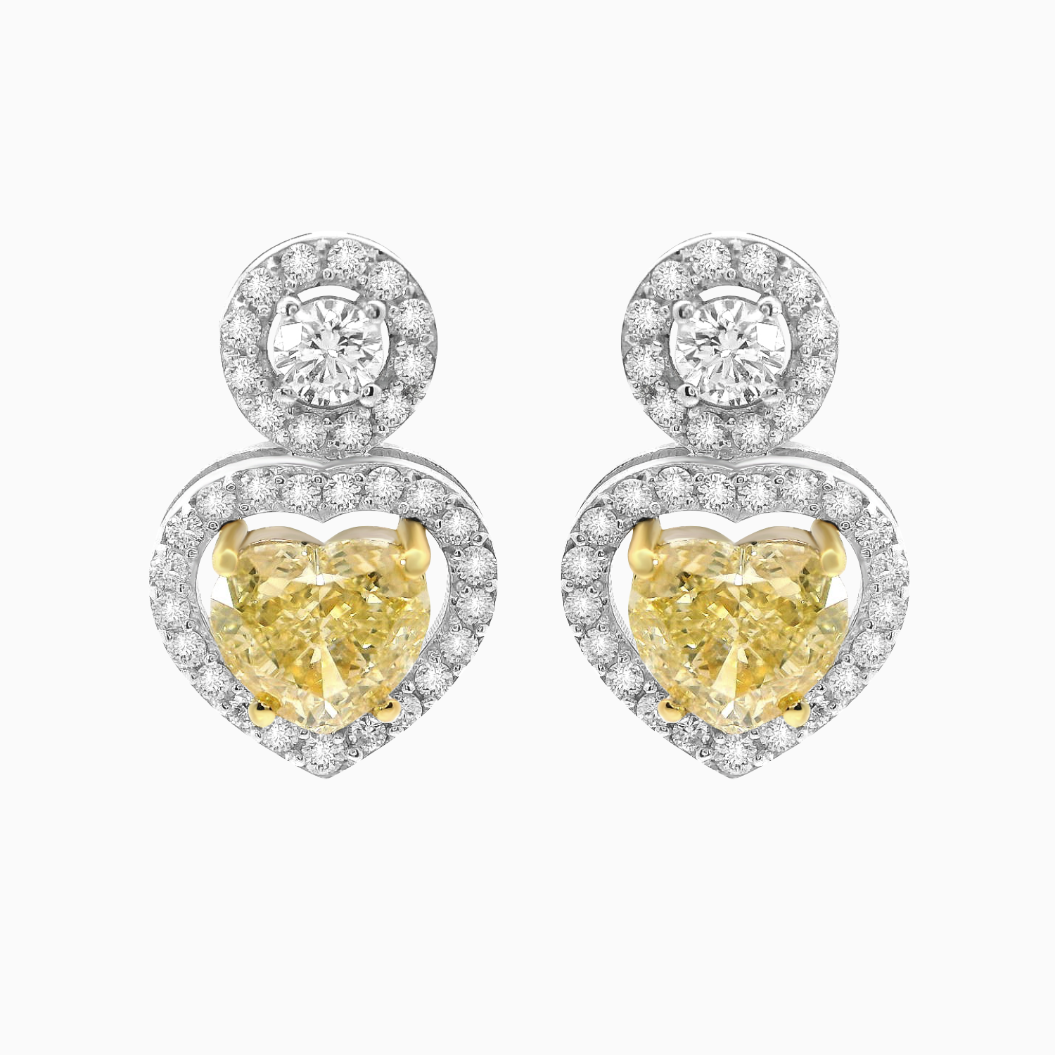 Yoğun Fantezi Sarı Kalp Kesim Pırlanta Küpe