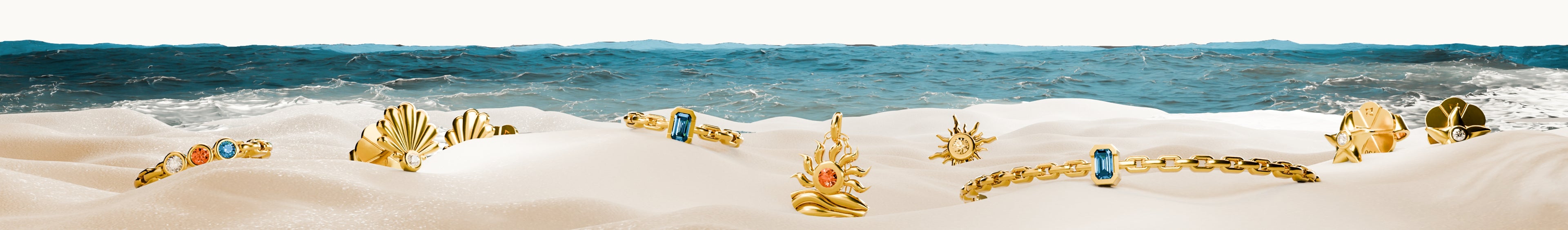 Inspired by seashells, stars, and the traces of waves, each design takes shape in 18-karat gold with a graceful, lightweight flow reminiscent of a work of art. Every motif gently echoes the rhythm of summer. This artisanal touch brings tactile depth and a contemporary elegance; each creation carries the soul of the Mediterranean and the legacy of fine craftsmanship.