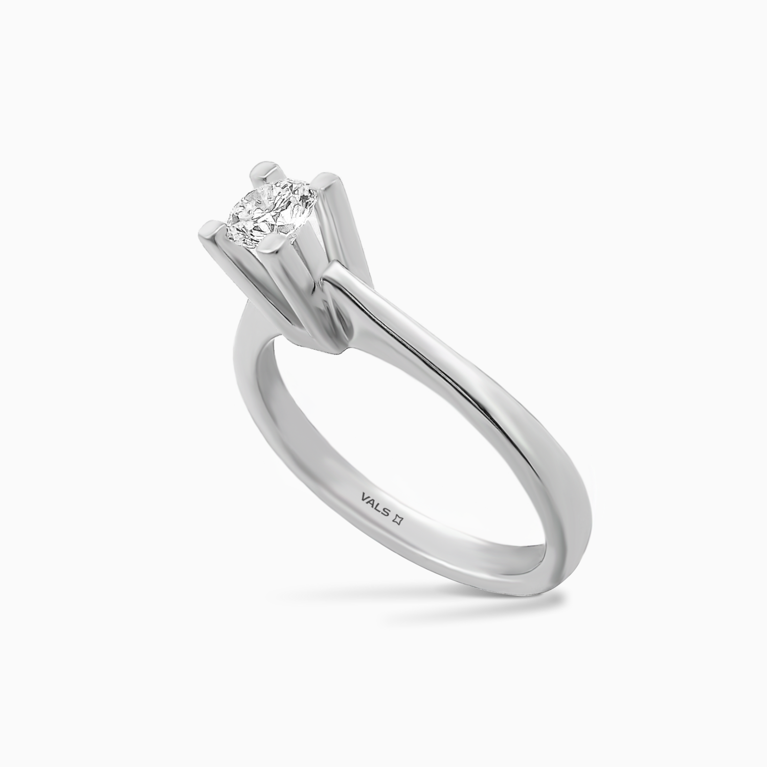 This 0.30 carat round cut diamond ring, with F color and VS2 clarity, is crafted with meticulous skill in 18k white gold. The diamond reflects light flawlessly, offering a refined and captivating sparkle. Both simple and timeless, this design adds a sophisticated and lasting touch to your style. Each Vals jewelry piece is brought to life with its own unique elegance and craftsmanship. Due to this distinctive design process, dimensions, carat weight, and gemstone characteristics may subtly vary from piece to piece.