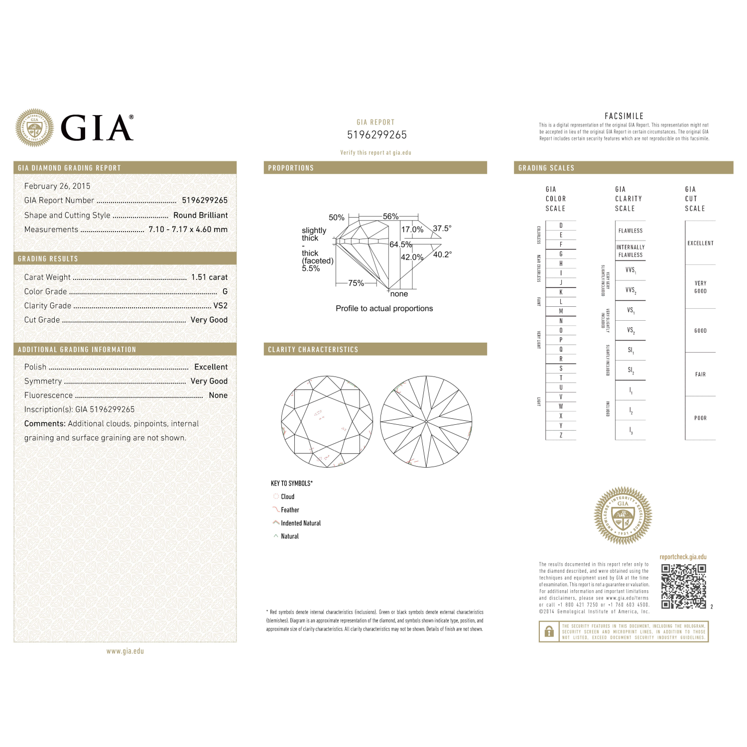 GIA Certified, 18k White Gold, 1.51ct Round Cut Diamond.