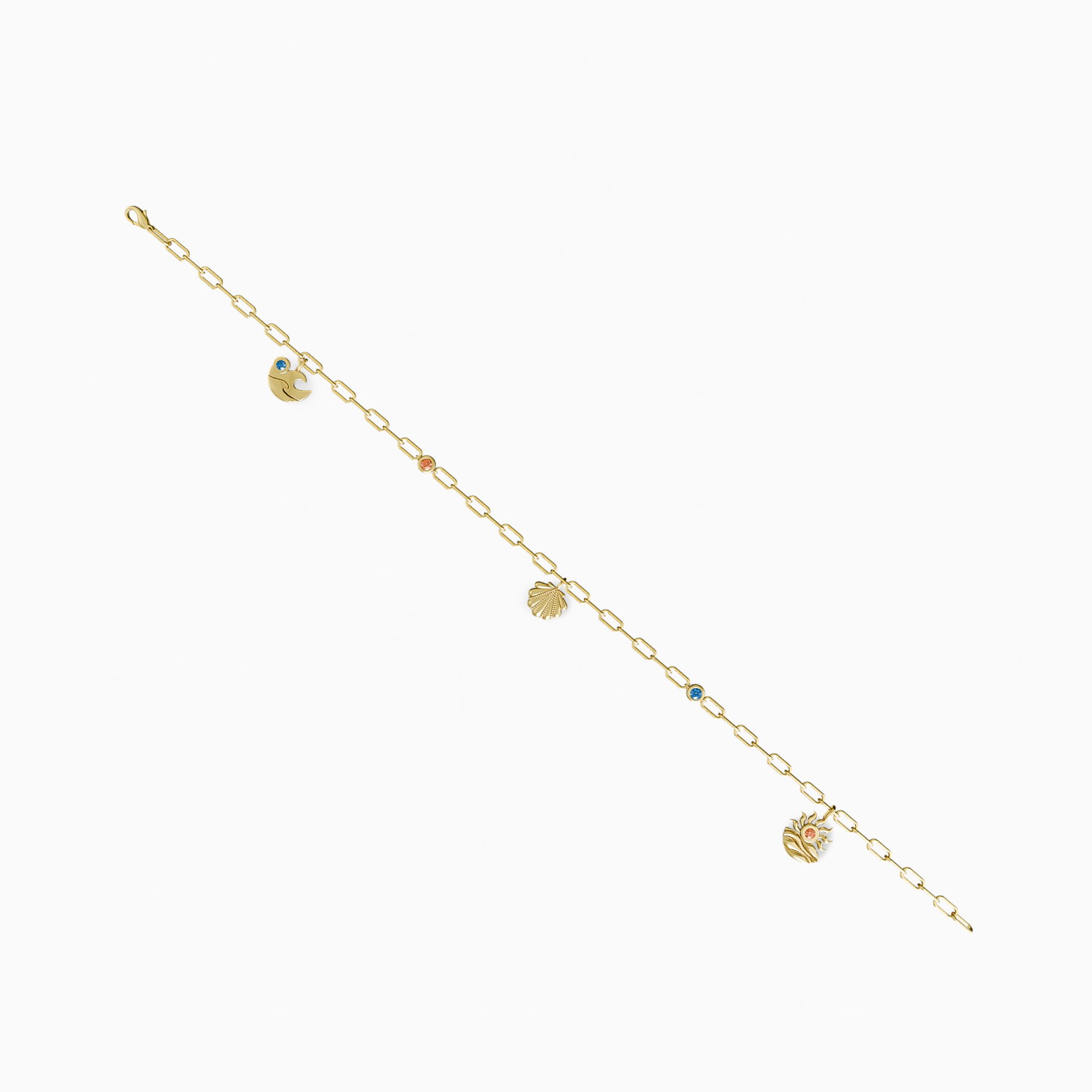 The Moment Ankle Bracelet captures the vibrant energy of summer, blending the mesmerizing blues of the sea with the warm hues of the sunset. Meticulously crafted in 18k yellow gold, this exquisite piece comes to life with 0.38 carats of round cut natural blue and orange sapphires, radiating a delicate and lively sparkle with every step you take. Lightweight and modern in design, the Moment Ankle Bracelet embodies the freshness and freedom of summer, making it a timeless expression of elegance and sophistication.
