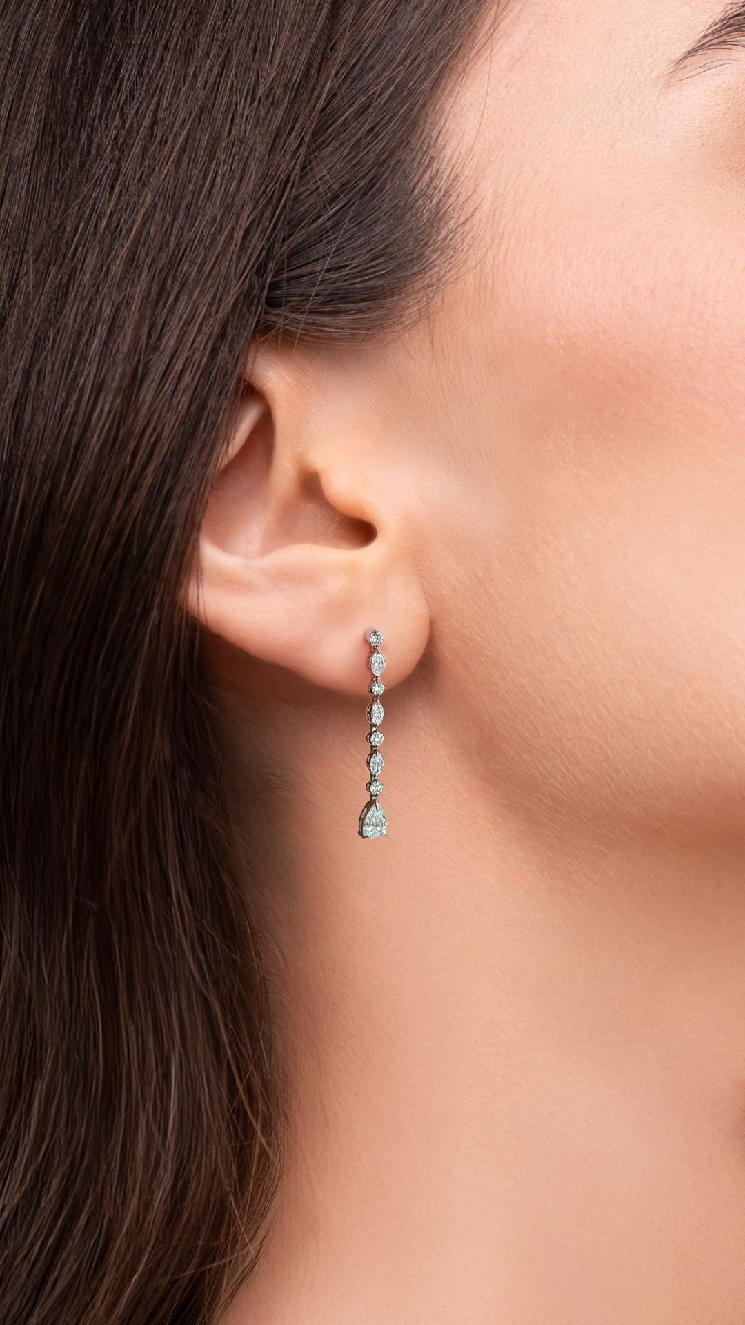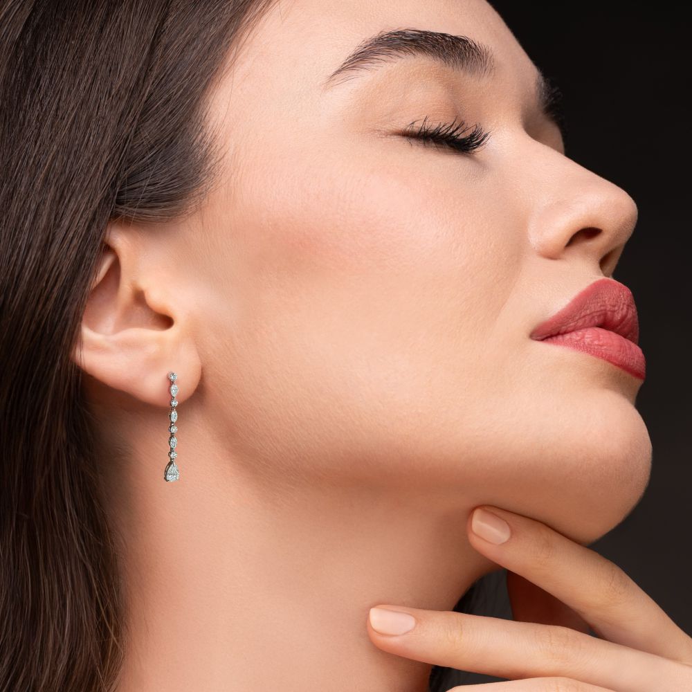 18 Ayar Beyaz Altın, 1.25 Karat Armut, Markiz ve Yuvarlak Kesim Pırlanta.