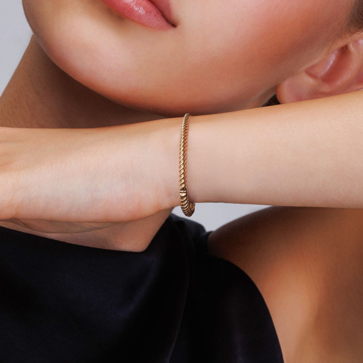 Bu 14 ayar altın burgu bilezikle zarif sadeliği keşfedin; sade lüks ve modern şıklığı takdir edenler için tasarlanmış unisex bir başyapıt. Heykelsi spiral tasarımı, ışığın üzerinde etkileyici bir oyun yaratarak hem erkek hem kadın stillerine kusursuz uyum sağlayan şık ama sofistike bir görünüm sunar. Solid 14 ayar altından ustalıkla üretilmiş bu premium bilezik, dayanıklılık, parlaklık ve uzun ömürlü güzellik sunar. Esnek ama güvenli yapısı sayesinde rahat bir kullanım sağlarken, imza niteliğindeki burgu silueti derinlik ve boyut katarak onu her mücevher koleksiyonunun ikonik bir parçası haline getirir. Tek başına bir statement parça olarak veya diğer altın aksanlarla kombinlenerek kullanılabilir; bu lüks 14 ayar altın bilezik, minimalizm ile sanatsal tasarımın zamansız bir birleşimini sunar. Günlük şıklık, özel davetler veya özel zevklere sahip birine hediye etmek için mükemmeldir.