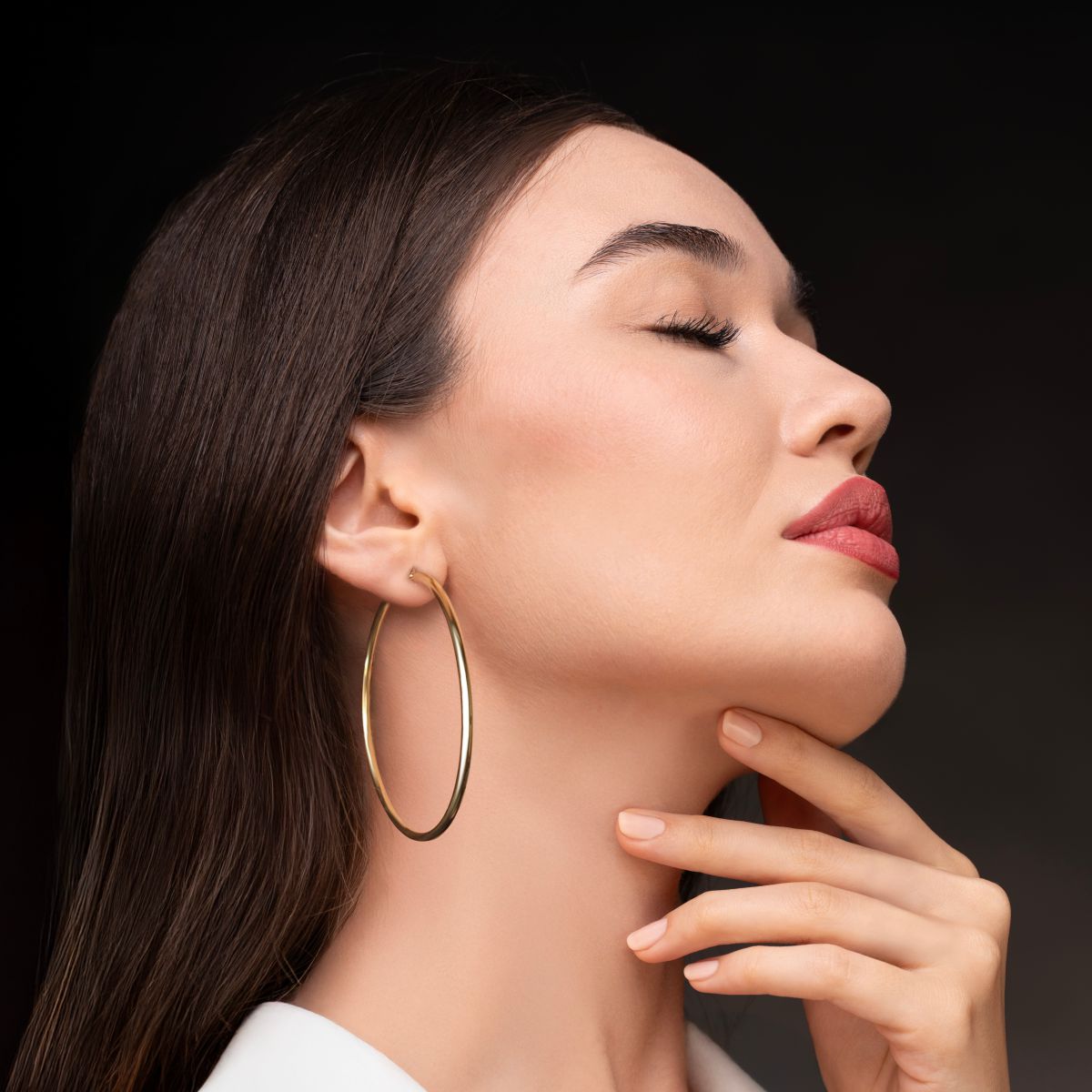 Grande Hoop, modern lüksün güçlü bir ifadesi olarak öne çıkar; takılarıyla fark yaratmayı sevenler için tasarlanmıştır. Bu 14 ayar büyük altın halka küpeler, ışığı olağanüstü bir yoğunlukla yakalayan ve yansıtan cesur, heykelsi bir siluete sahiptir. Her hareketle yüzün etrafında ışıldayan bir aura yaratan geniş çapı ve akıcı kıvrımları, hem etkileyici bir varlık hem de kusursuz bir zarafet sunar. Aynalı parlaklığındaki yüzey, 14 ayar altının doğal ışıltısını güçlendirir ve gün ışığından gece ışıltısına kusursuz biçimde uyum sağlayan bir parlama yaratır. İster sade şıklığa eşlik etsin, ister zarif bir gece stilini tamamlasın, bu halka küpeler her görünüme anında özgüven ve karakter katar. Premium 14 ayar altından ustalıkla üretilen Grande Hoop, kalıcı bir parlaklık ve dayanıklılık için tasarlanmıştır. Dengeli yapısı sayesinde iddialı boyutuna rağmen rahat bir kullanım sunar; zanaatkârlığı, göz alıcı ışıltısı ve zamansız çekiciliği bir araya getiren lüks, büyük altın halka küpe arayanlar için ideal bir seçimdir. Göz alıcı hacmi, ışıltılı yüzeyi ve kalıcı zarafetiyle Grande Hoop, bir aksesuardan çok daha fazlası hâline gelir; onu takan kişinin duruşunu ve varlığını tanımlayan imza bir parçaya dönüşür.