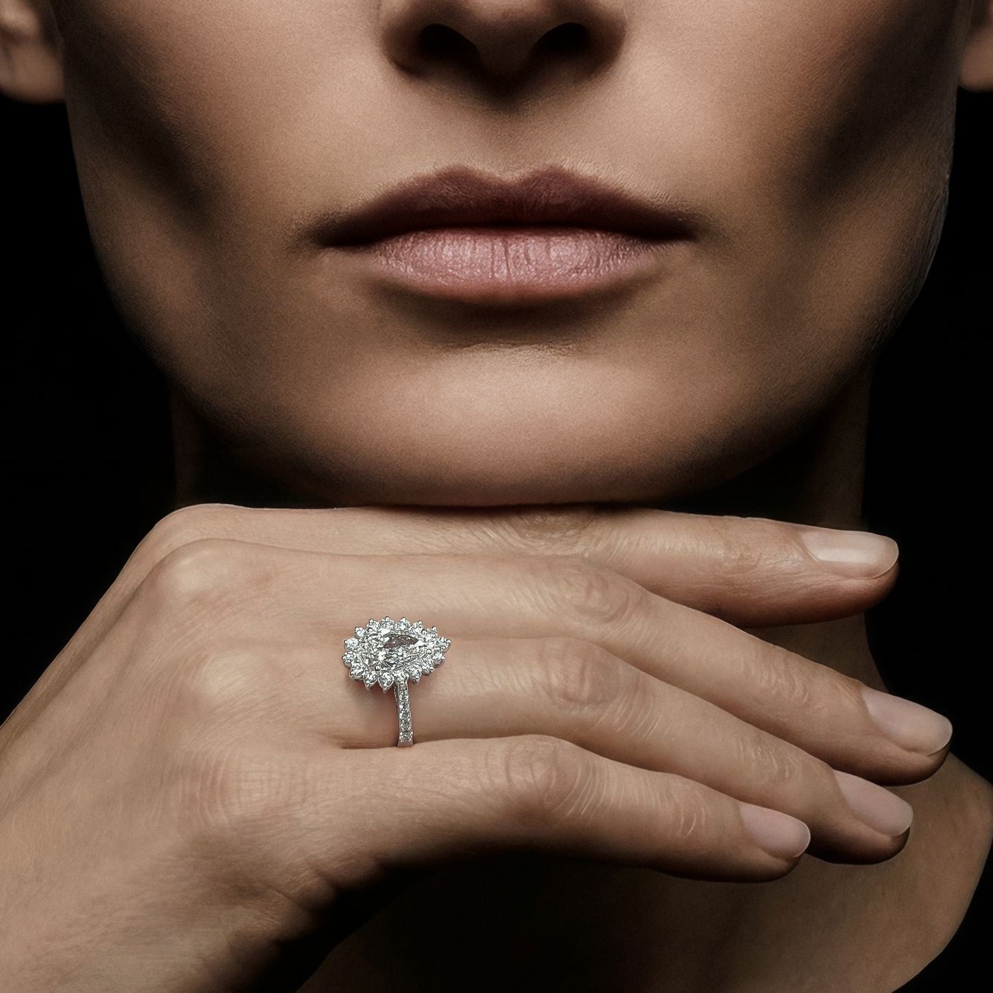 Vals Élan Pırlanta Yüzük merkezinde, GIA sertifikalı 2,01 karatlık Armut Kesim Pırlanta yer almaktadır. H rengi ve VS1 berraklığı ile bu olağanüstü merkez taşı, armut kesiminin zarif silueti sayesinde ışığı çarpıcı bir derinlikle yansıtmaktadır. Merkez taşı çevreleyen 28 yan pırlanta, toplam 0,67 karatlık E rengi ve VS1 berraklığı ile tasarıma zarif ve sofistike bir ışıltı katmaktadır. Yan taşların üstün rengi ve berraklığı, merkez elmasın karakterini mükemmel bir şekilde tamamlar ve güçlendirir. 18 ayar beyaz altından üretilen montür, elmasların doğal parlaklığını vurgular ve zamansız ve güçlü bir görünüm sunar. Vals Élan, klasik solitaire estetiğini yüksek karatlı bir merkez taşla bir araya getirerek, hem zarafet hem de yatırım değeri açısından ayırt edici bir parça olarak öne çıkar.