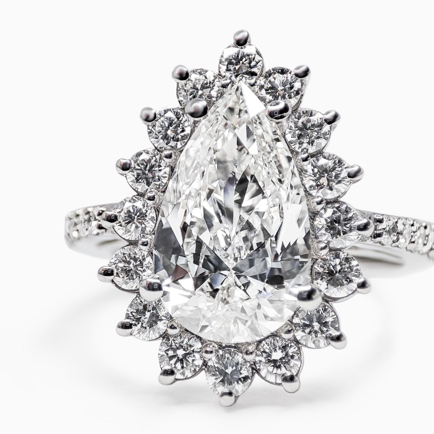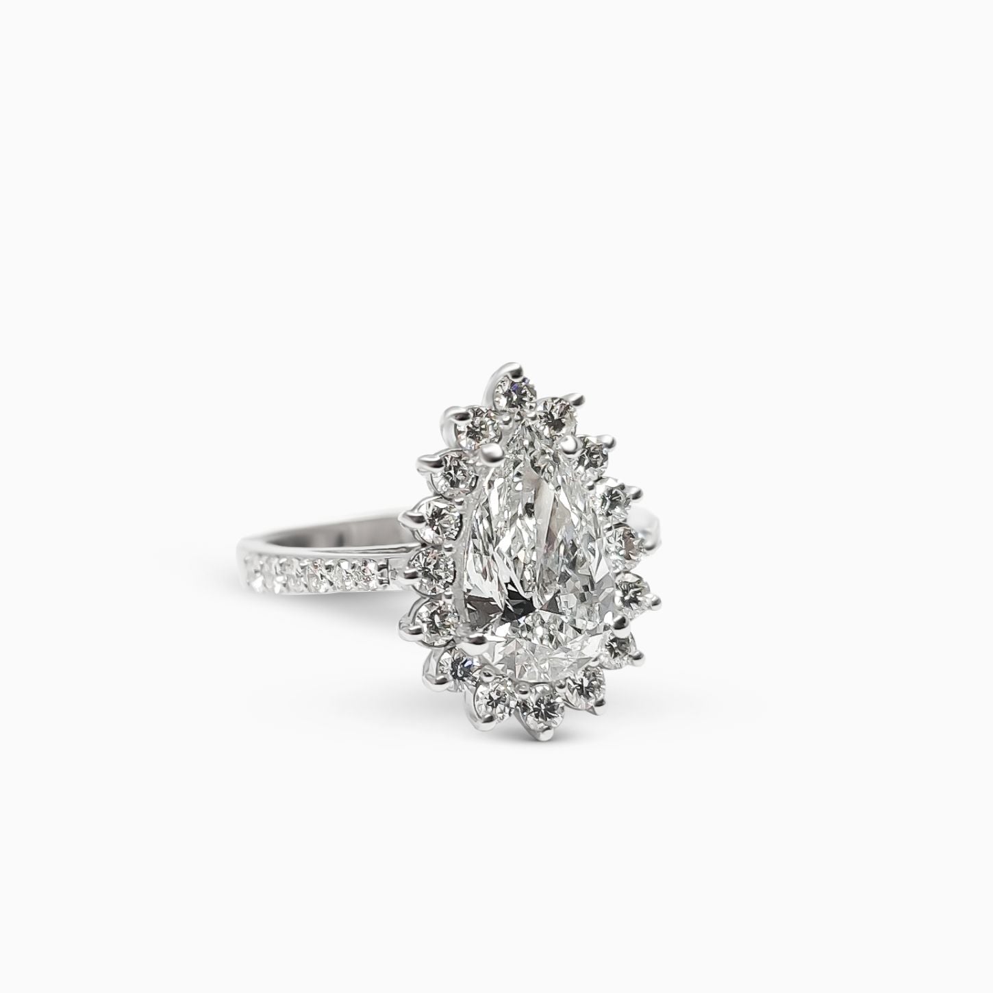 GIA Sertifikalı, 18 Ayar Beyaz Altın, 2,68 Karat, H Renk, Armut Kesim, VS1 Berraklıkta Pırlanta Yüzük.