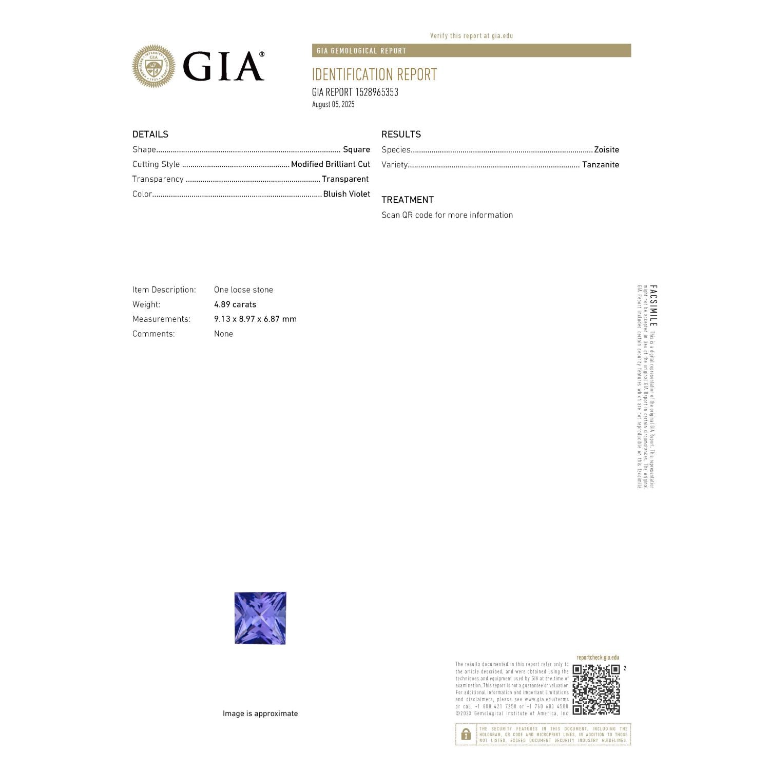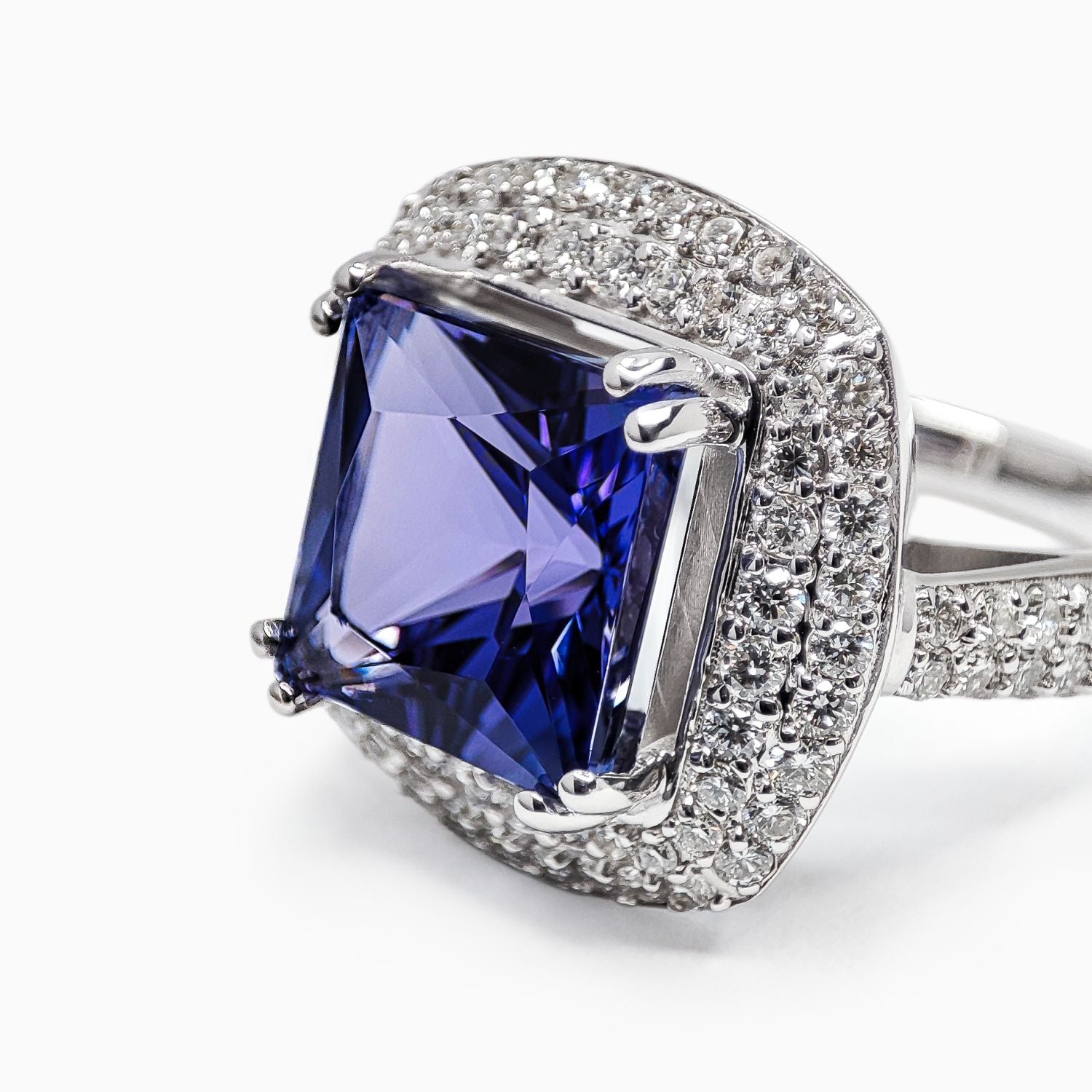 GIA Sertifikalı, 18 Ayar Beyaz Altın, 4.89 Karat Prenses Kesim Tanzanit, 1.30 Karat Yuvarlak Kesim Pırlanta.